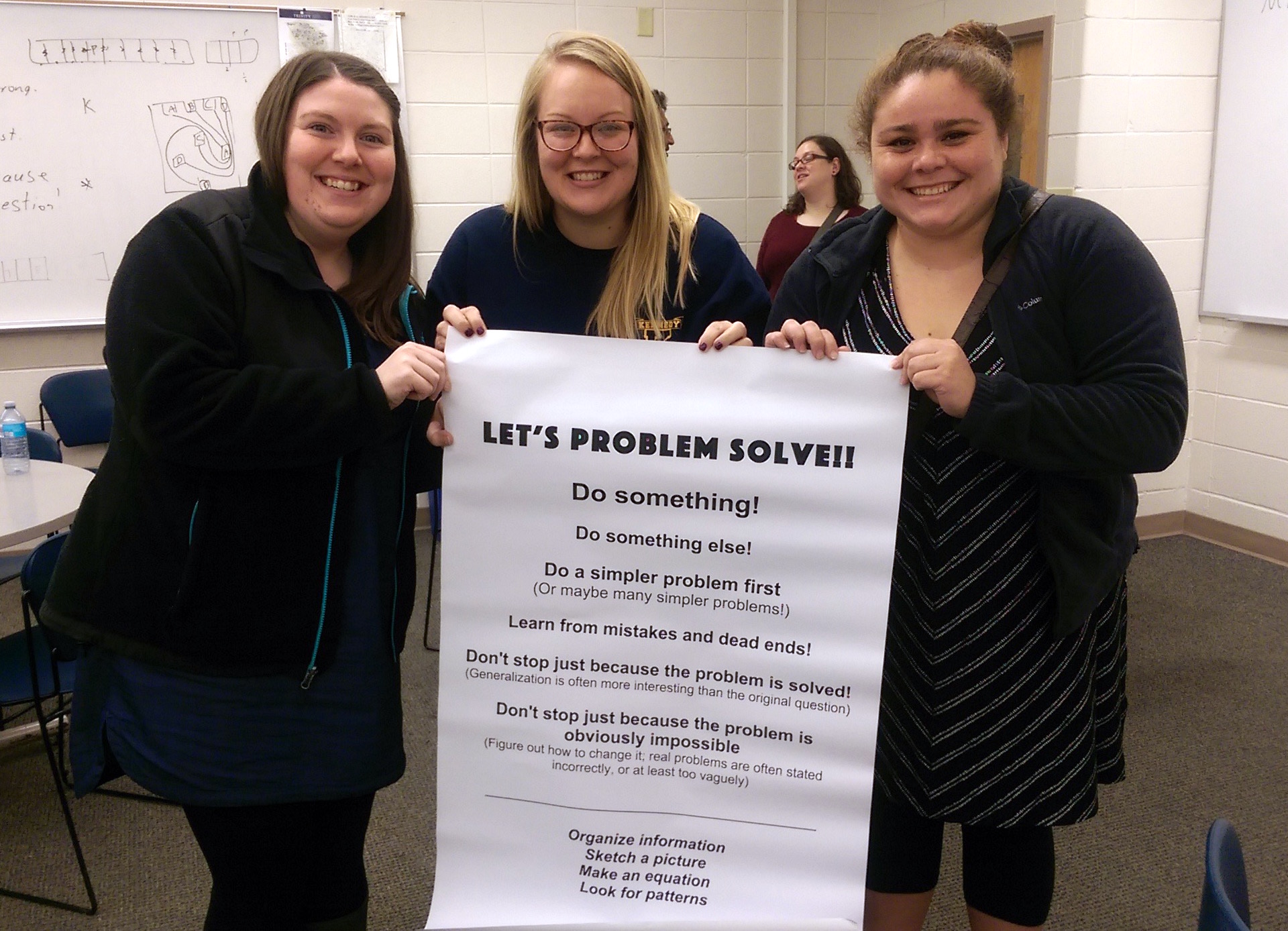 - Be willing to compromise with the problem. Maybe you won’t solve it as stated. Maybe you should do an easier problem first. Maybe you’ll have an idea for a similar problem that works out better, and you can learn from that. You’ll have more fun if you can be flexible!